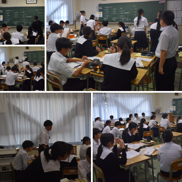 2年生社会科の授業。現在、明治維新について学習中です。今日は、近代国家(政府中心の国家、平等な社会、欧米に負けない国)を目指すために行った様々な改革を確認、それぞれの政策が、五箇条の御誓文(1868年、明治天皇が神々に誓う形で発布した明治新政府の新しい政治の基本方針)のどれにあてはまるのか、また、1~5条の達成度について考え、意見交流していました。授業の様子を拝見しながら、明治維新によって社会が大きく変化したんだなあと、改めて実感しました。