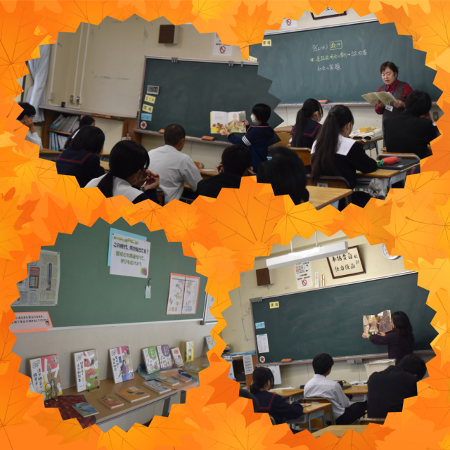 本日の朝読書・朝自習の時間は、図書ボランティア、先生方による読み聞かせの時間でした。教室の明かりを消した薄暗い空間の中など、各教室では、話にじっと聴き入る様子が見られました。また、図書ボランティアの何名かの方には、図書館の飾り付けをしていただきました。ハロウィン仕様に模様替えです。ありがとうございました。