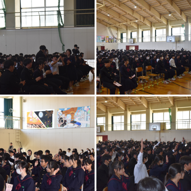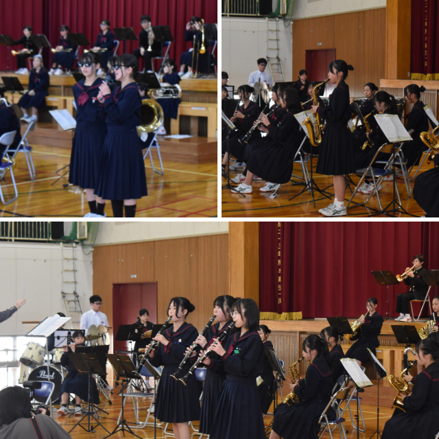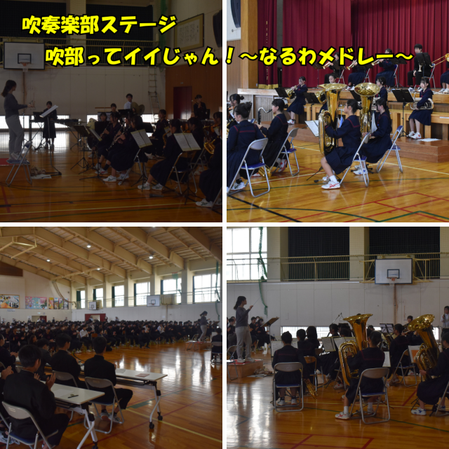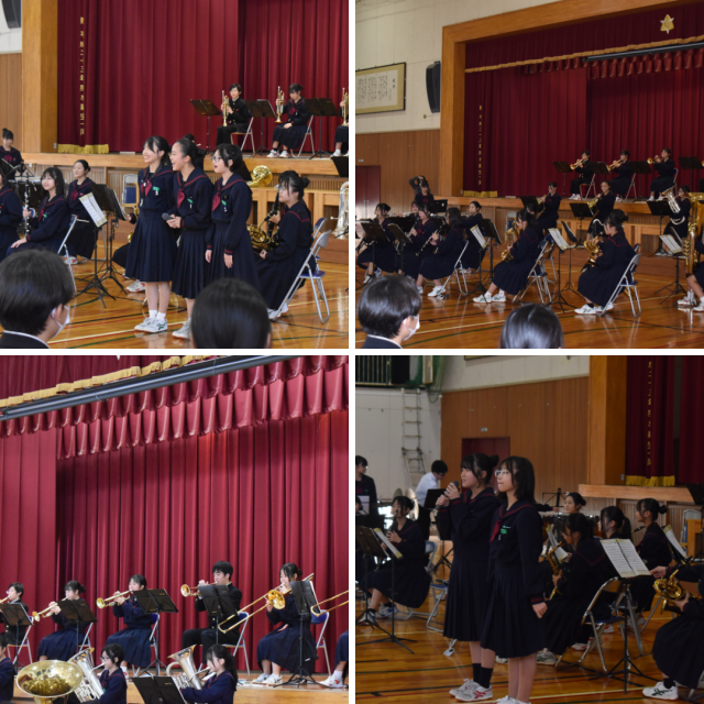 文化祭第一部「文化発表会」③! 公開日 2025/11/04 更新日 2025/11/04 学校の様子 11月4日(火)文化発表会の最後は、吹奏楽部の演奏でした。生徒達にとっても馴染みの曲が多く、吹奏楽部と会場が一体となって大いに盛り上がりました。午後のひととき、大変素敵な時間を過ごすことができました。発表者の皆さん、大変お疲れ様でした。そして、司会進行を含め、会を運営してくれた生徒会執行部の皆さん、本当にありがとうございました。 +2