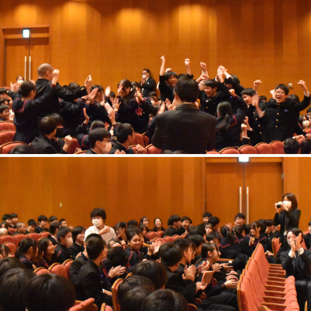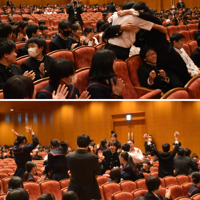 3年の部が終了し、いよいよ成績発表。1年の部から結果が発表されるたびに、優秀賞、最優秀賞に輝いたクラスは喜びを爆発させていました。優秀賞、最優秀賞を見事に獲得したクラスの皆さん、本当におめでとうございます。そして、私から全クラスの皆さんに「感動賞」を送ります。生徒の皆さん、今日一日、感動をいっぱいもらいました。本当にありがとう。