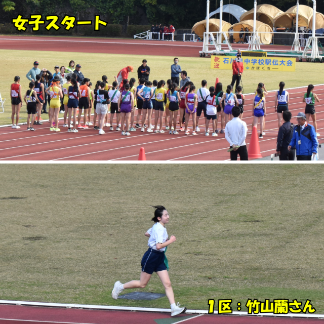 本日「石川県中学校駅伝大会」が、かほく市うのけ総合運動公園陸上競技場発着の周回コースで開催されました。本校は、陸上部と学校で選抜されたメンバーでチームを編成し、男女で出場しました。