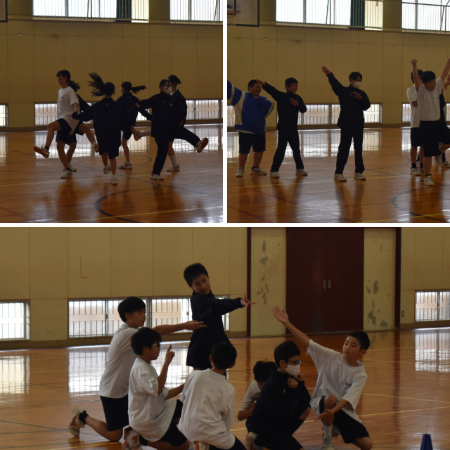 1年生保健体育科の授業。1年生もダンスに取組中。今日は、「ジェンガ」のグループ発表を行っていました。ジェンガとはフィンランドで古くから伝承されてきた民族舞踊で、音楽を聴けば多くの人が耳馴染みの曲です。各グループで、隊形、オリジナルの振り付け、決めポーズを試行錯誤しながら練習し、みんなの前で披露しました。何より、発表するみんなの笑顔が最高でした。