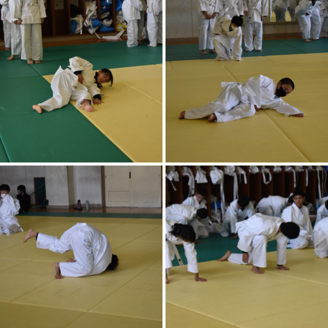 1年生保健体育科柔道の授業。授業にお邪魔したときはちょうど、横受け身と前回り受け身の習得に励んでいるところでした。柔道をする上で、一番基礎となる技術は受け身です。受け身をきちんとできないとケガの元になりますし、ケガをしてはせっかくの柔道を楽しむことができませんね。受け身は「負けてもケガをしない練習」「自分だけでなく相手にもケガをさせない練習」です。互いの安全に配慮して柔道の授業を楽しんでくださいね。