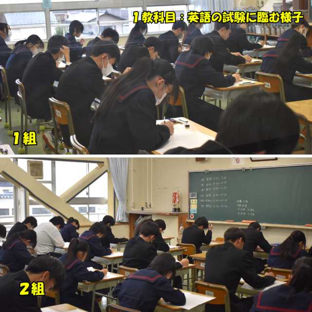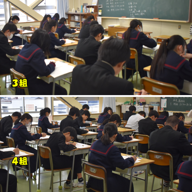 さて、本日3年生は実力テストに臨んでいます。3年生にとっては、今月は11日に第1回市統一テスト、19日、20日に2学期期末テスト、そして本日の実力テストと厳しい日々が続いています。返却された答案を見直し、自身の学習内容が定着しているもの、理解が不十分だと思われるもの、苦手と感じているところをしっかりと分析して、課題克服に向けて焦らずに努力を続けてください。負けるな3年生、みんなで応援しています!