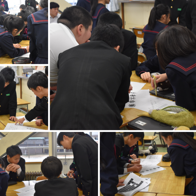 2年生のあるクラス。各グループ、頭を寄せ合って謎解きにチャレンジ。お互いの知恵を出し合って答えを導き出そうとしている真剣な姿は美しいものですね。