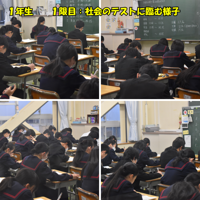 3年生:第2回統一テスト、1、2年生:第2回実力テスト 公開日 2026/01/08 更新日 2026/01/08 学校の様子 1月8日(木)3学期2日目、本日は、3年生は「第2回市統一テスト」、1、2年生は「第2回実力テスト」です。