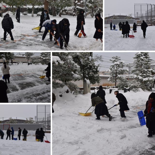 昨日の朝よりもやや少なめでしたが、今日の朝も積雪がありました。今日は2年3組が除雪当番。朝早くから、通路や安全確保のために、除雪をしてくれました。2年3組の皆さんの気持ちに感謝です。また、協力してくれた先生方、ありがとうございました。