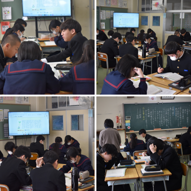 3年生国語科の授業。現在、鷲田清一(わしだきよかず)さんの随筆「それでも、言葉を」の学習に入っています。