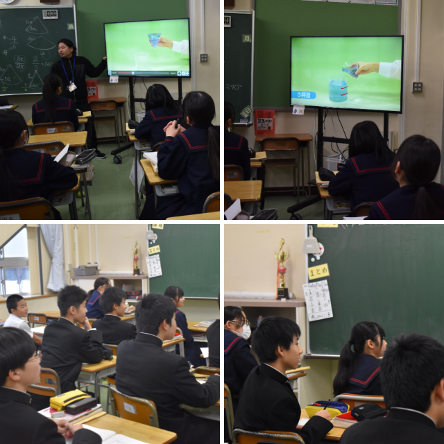 1年生数学科の授業。現在、角柱や角錐などの立体の体積の求め方の学習に入っているようです。