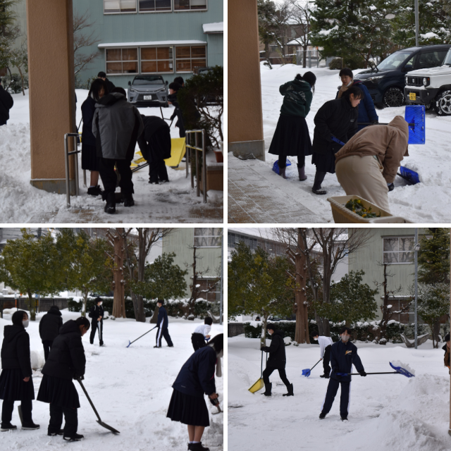今週がスタートしました。今日も週末に積もった雪の除雪を1年2組の皆さんが行ってくれました。今シーズンは除雪の機会が多いですが、皆さんの気持ちに心から感謝です。ありがとうございました。