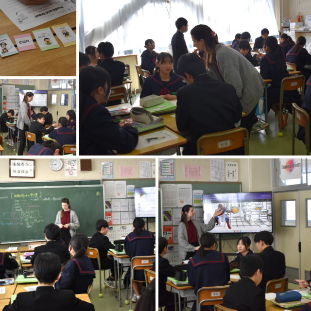 2年生英語科の授業。今日は火曜日ということで、サラ先生と一緒に、ゲームを通して助動詞を含めた受け身の表現に慣れ親しんでいました。当たり前のことですが、サラ先生が授業中に話すのは英語のみ。サラ先生の話を聞いて内容を理解しようとしたり、サラ先生と英語でやりとりする時間は、英語上達のためにとても大切な時間です。授業以外の場面でも、サラ先生と積極的にコミュニケーションを取ってみてください。少々の間違いは気にせず積極的にコミュニケーションを図ろうとする人は英語が上達しますね。