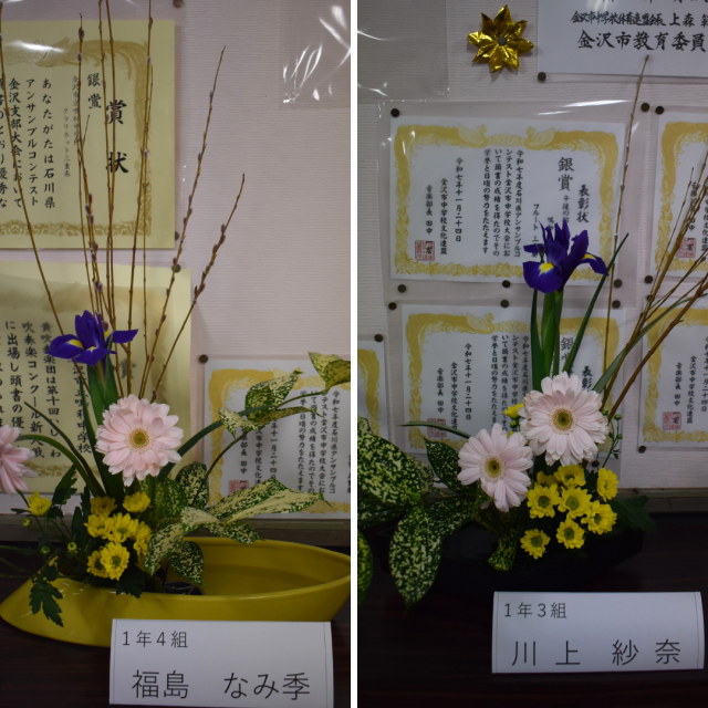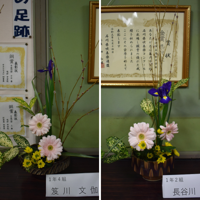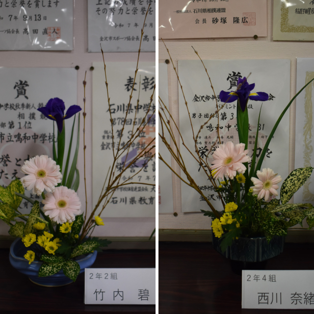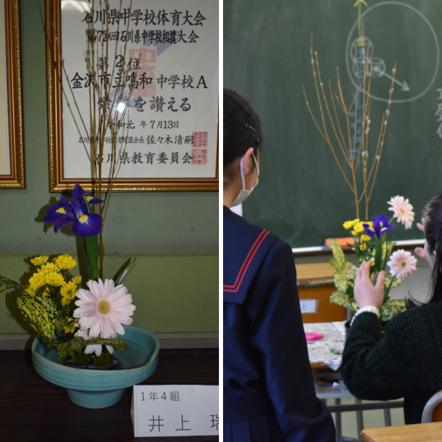 作品が飾られています! 公開日 2026/02/19 更新日 2026/02/19 学校の様子 2月19日(木)放課後の茶華道部の活動の様子。嵯峨御流の盛花の基本花態を確認し、各自が生け花に取り組み、師範からのチェックを受けていました。作品は1階生徒玄関ホールに飾られています。ぜひ、作品を鑑賞してください。 +4