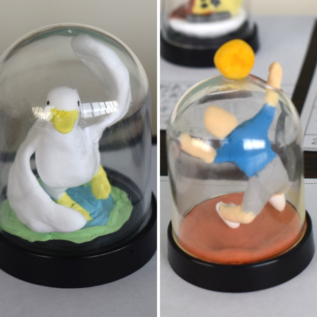 2年生美術科の授業で、躍動感を表現することをテーマに製作した立体表現。先週、美術室前に2クラスの作品が展示されていることをお伝えしました。本日、残り2クラスのうちの1クラスの作品が展示されました。写真では、実際に感じる躍動感が十分に伝わらないかもしれませんが、何作品か紹介します。