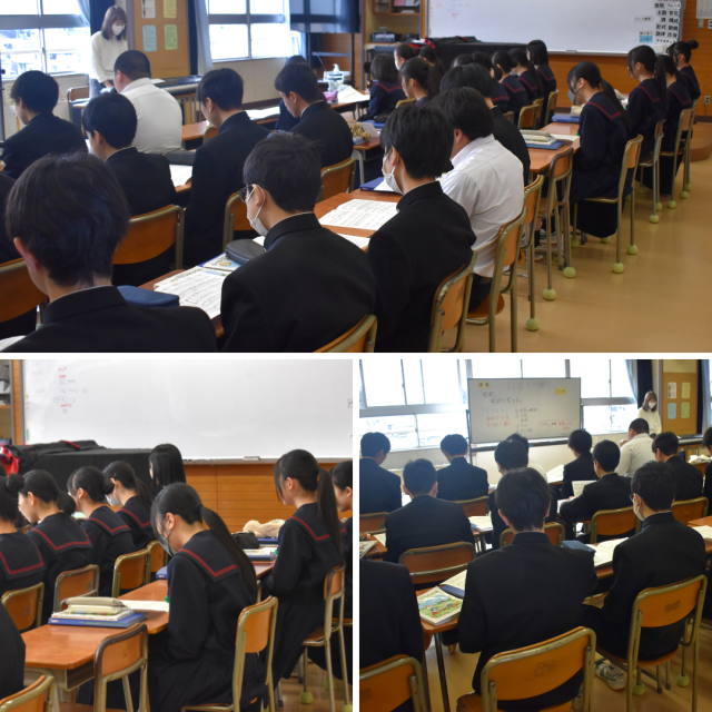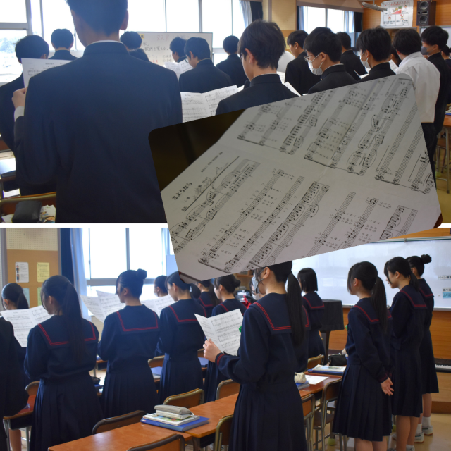 2年生音楽科の授業。卒業式当日は、在校生の「さようなら」の合唱に送られながら、3年生が体育館を退場していきます。先輩として、運動会などの学校行事、あるいは部活動、また学校における様々な活動において、後輩たちを引っ張ってくれた3年生への感謝の気持ちを込めた合唱で、3年生を送り出しましょうね。2年生の皆さん、1年先輩として、卒業式当日は1年生をしっかりとリードしてあげてください。よろしくお願いします。