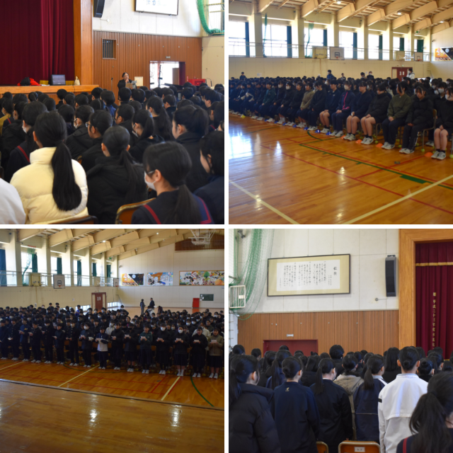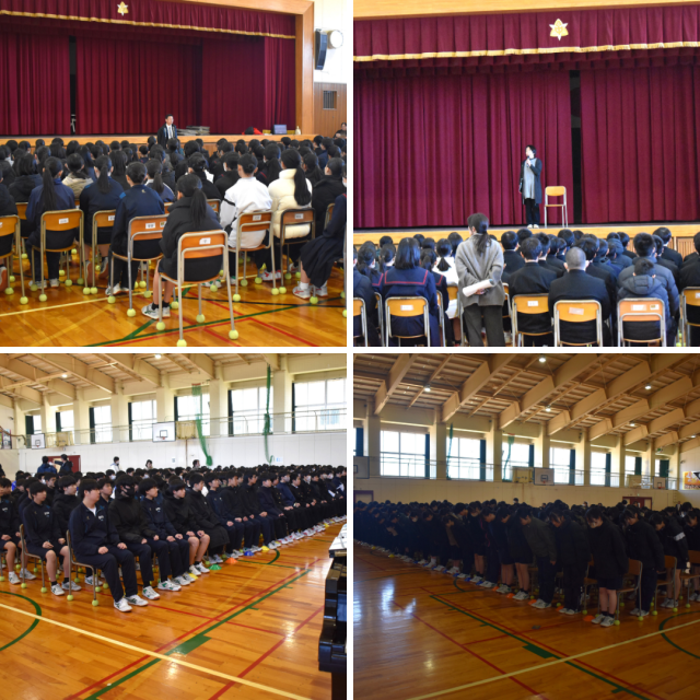 本日4限目に、1、2年生の卒業式練習を行いました。礼法、校歌、在校生合唱「さようなら」の練習に取り組みました。3年生への感謝の気持ちを、式での態度、礼法、歌声で表し、3年生を送り出す準備が整いました。全員で最高の式を創り上げましょうね。1、2年生の皆さん、よろしくお願いします。