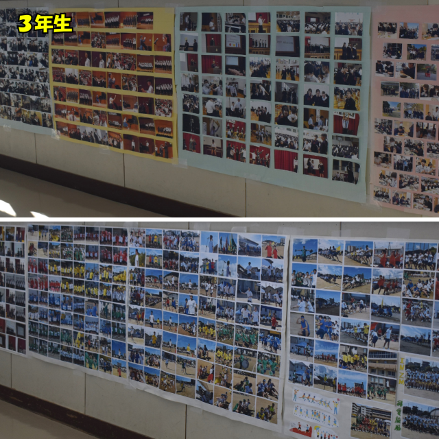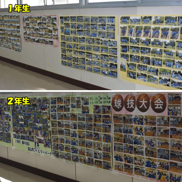 思い出がいっぱい! 公開日 2026/03/11 更新日 2026/03/11 学校の様子 3月11日(水)3年生のフロアが、3年間の学校行事や学年行事の思い出の写真で飾られています。1年生の頃のまだあどけない顔から少しずつ大人への階段を上っている今年の顔、みんな3年間で大きく成長しましたね。明日登校したら、写真を眺めながら3年間を振り返ってみてください。