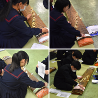 12月11日(木)1年生音楽科の授業。1年生も琴に取り組んでいます。2人ペアある...