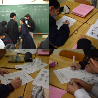 12月10日(水)1年生英語科の授業。今日はサラ先生と一緒の授業。現在、過去進行...