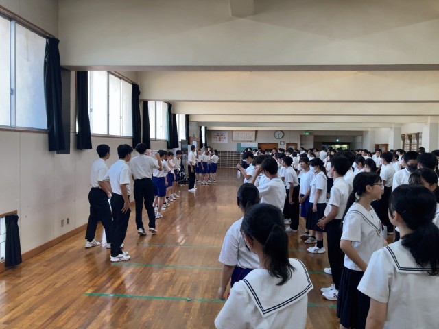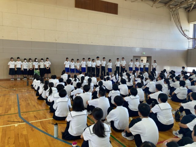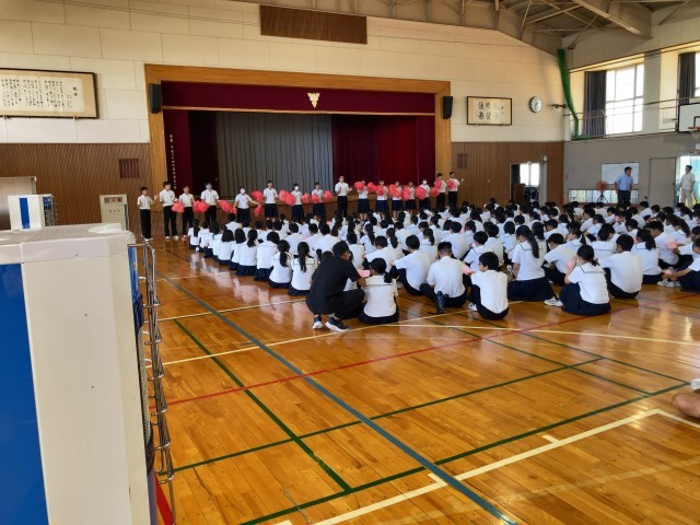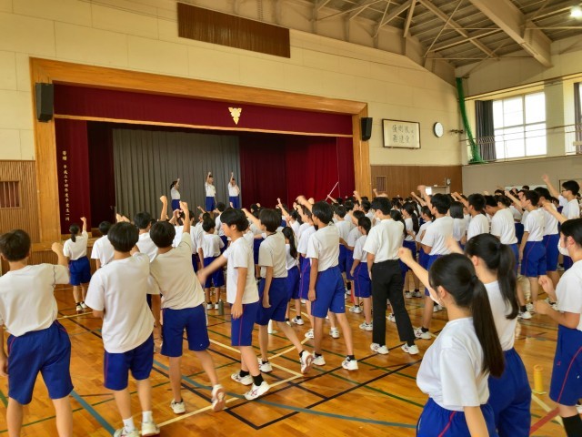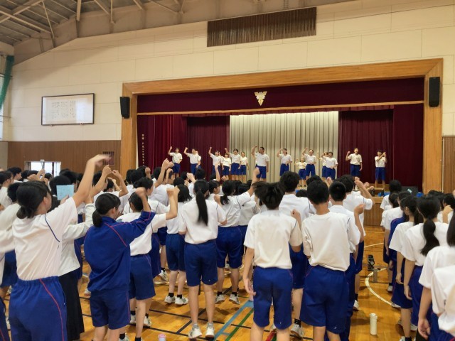 8月28日(木)5限目に、運動会結団式を行いました!夏休みの数日、3年生の応援団員が学校に集まり、準備をしてきました。
