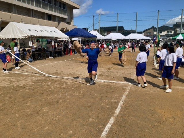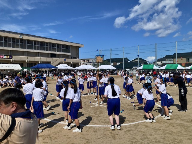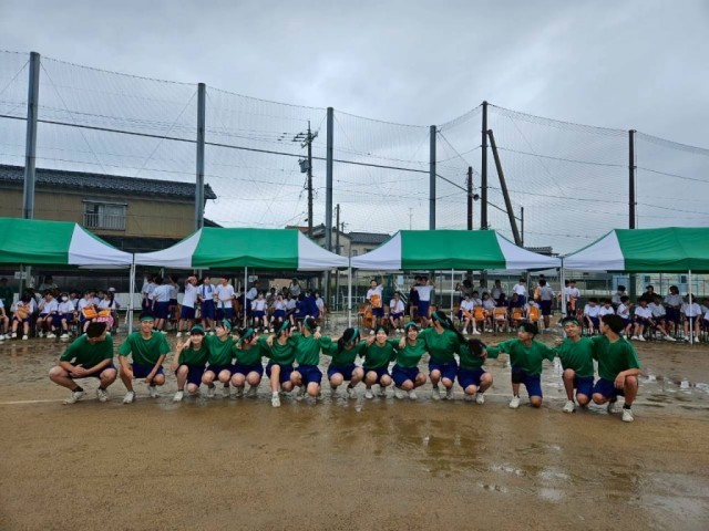 明け方の雨で、開催が危ぶまれた運動会でしたが、懸命のグラウンド復旧作業で、何とか開催にこぎつけることができました。