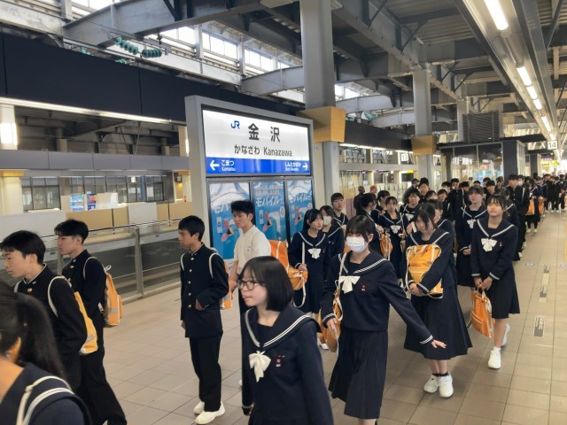 修学旅行、出発! 公開日 2026/04/14 更新日 2026/04/14 お知らせ いよいよ今年の修学旅行がスタートしました。集合時刻に全生徒が集合完了!もてなしドームで出発式を行い、新幹線で一路関西へ! +1