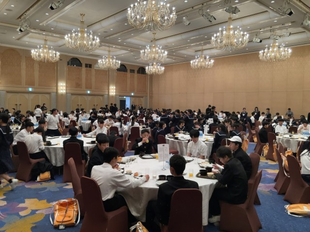 朝食後、2日目のクラス別研修の研修地に合わせて、朝食会場からクラスごとに出発します。