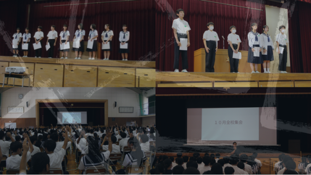 • 全校集会・後期生徒会役員認証式・表彰披露10.1