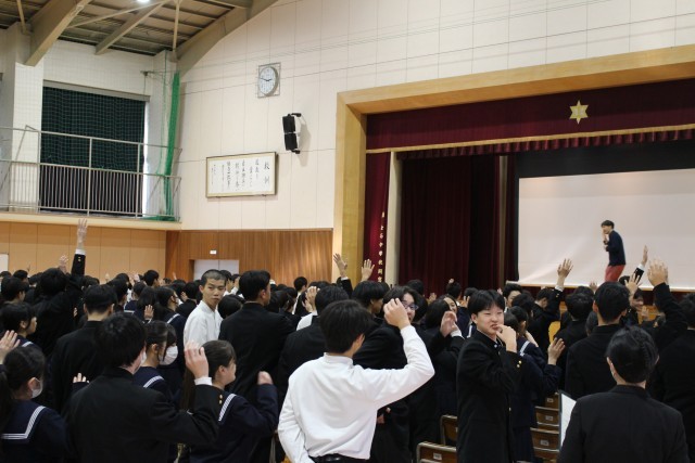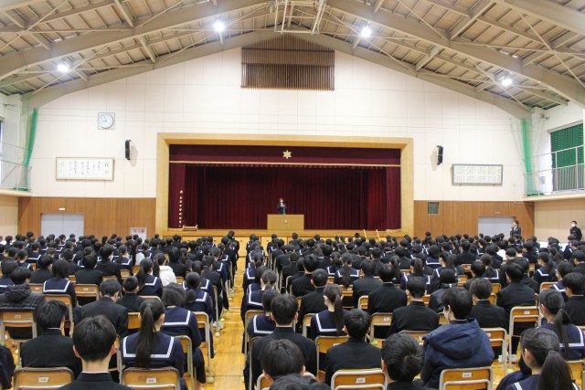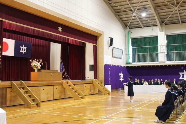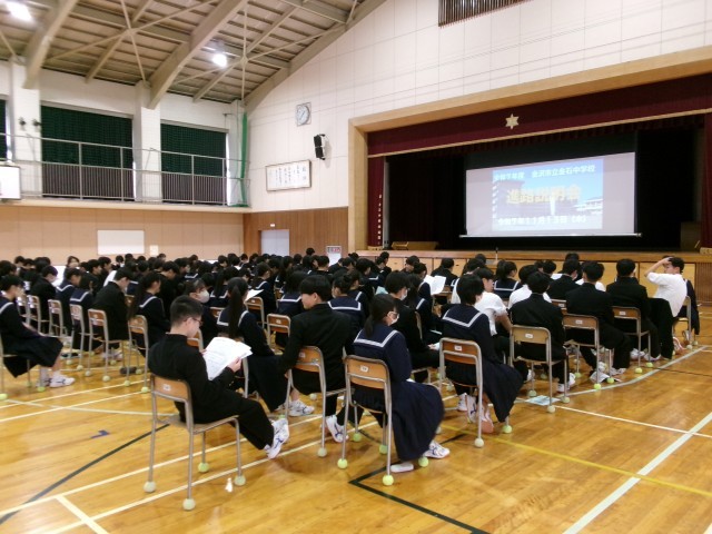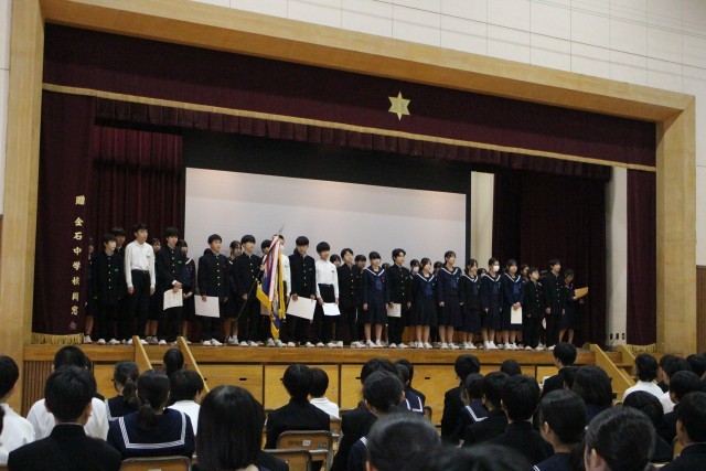 全校集会・後期生徒会役員認証式・表彰披露10.1