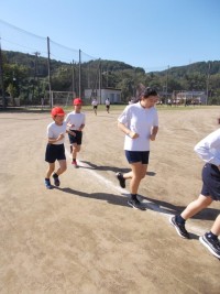 気持ちの良い秋晴れのもと、マラソンタイムが始まりました。中休みの時間を利用し、小学校全児童がマラソン記録会に向けて持久力を高めるために校庭を走りました。終わってから、中学年は国語科で学習している影送り...