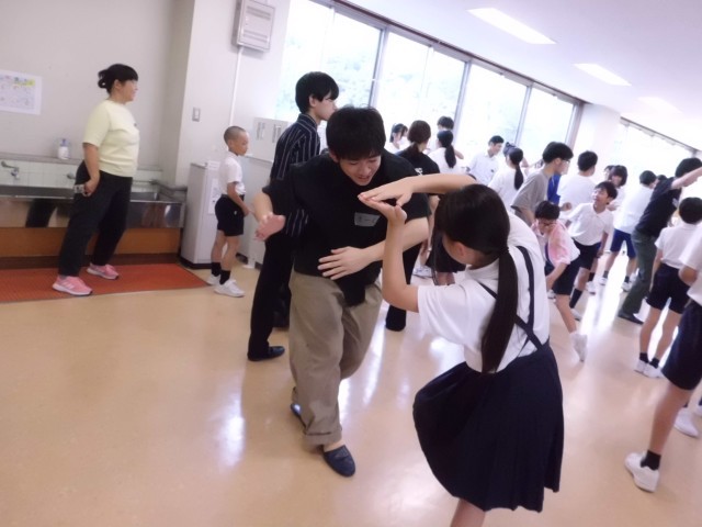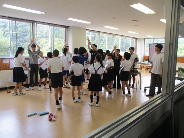 東京の学生たちが主体となって構成している劇団「遊学生」の皆さんをお招きし、小中合同で総合的な学習の時間や生活科の時間の中で、演劇ワークショップを行いました。大学生の皆さんと一緒に楽しく表現する時間を過ごしました。