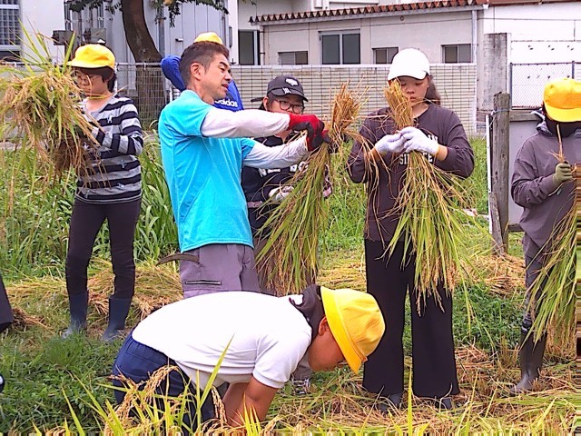 地域の方々に教えてもらいながら、手際よく稲を刈る姿が見られました。