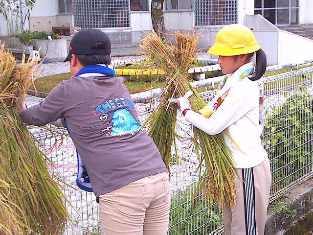 稲刈りやはさ干しの体験をしました。