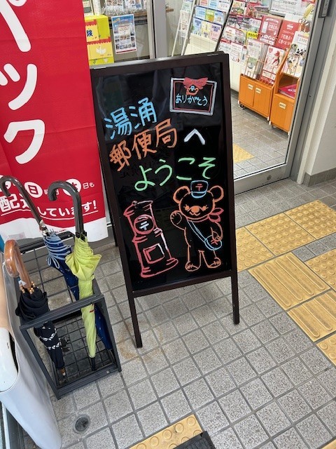 9月16日~18日に行われた中学2年の職場体験学習で本校生徒が描いたウェルカムボードが、郵便局入口に置かれていました!お立ち寄りの際には是非ご覧下さい。