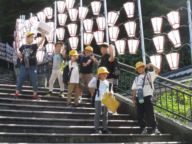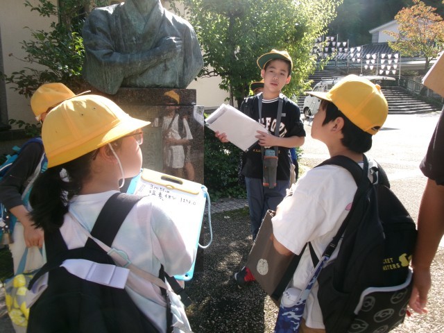 遠足では、2~4年生が2つの縦割りグループに分かれ、湯涌の街や郵便局、湯涌江戸村内でミッションに挑戦したり、友だちと楽しく遊んだりと、快晴の中、遠足を満喫しました。