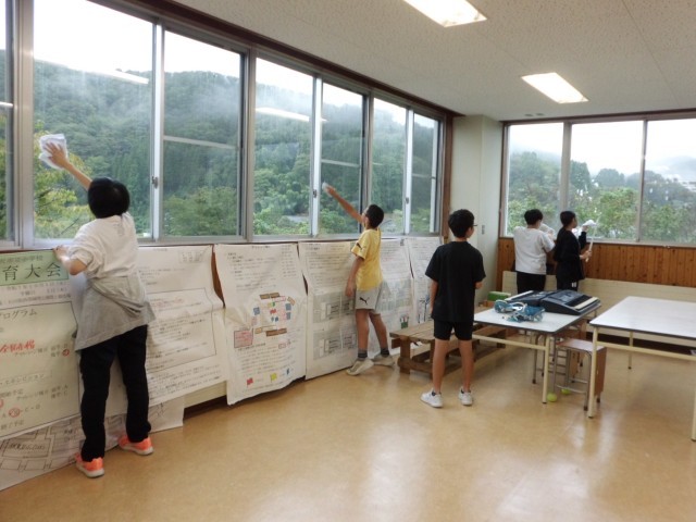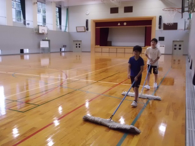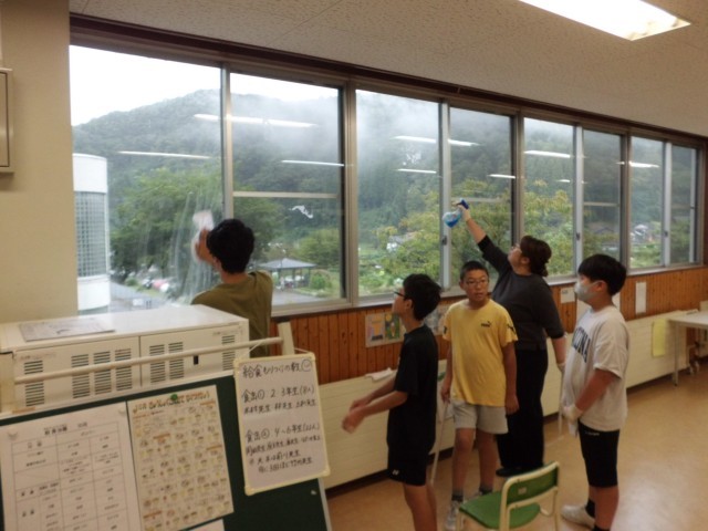 児童生徒が保護者や教職員と一緒に校内の窓拭きなど美化活動を頑張りました。