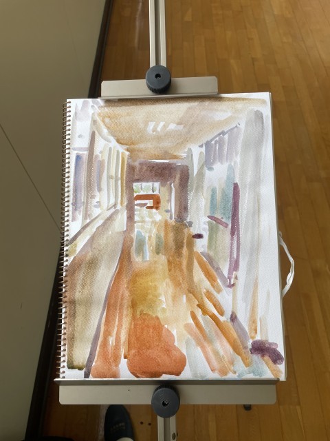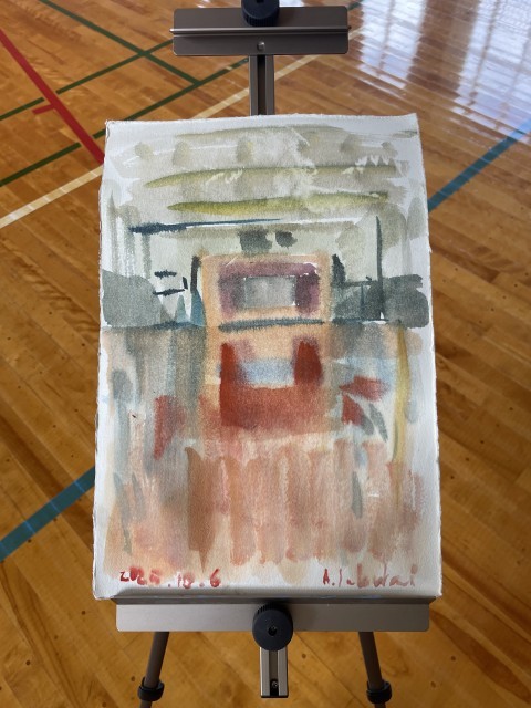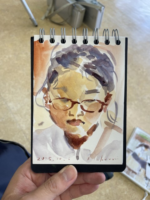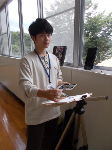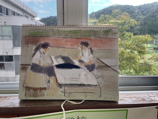 桜井さんが校内のいろいろなところでスケッチをしていました。