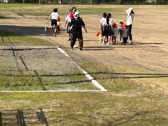 休み時間には遊んでいる園児のところに児童がかけつけ、一緒に遊ぶ姿も。