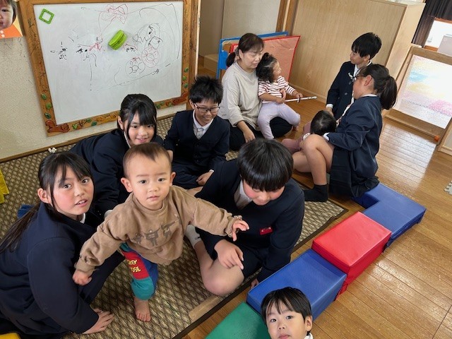 様子を見に行くと、未満児の子らと楽しく遊ぶ姿が。