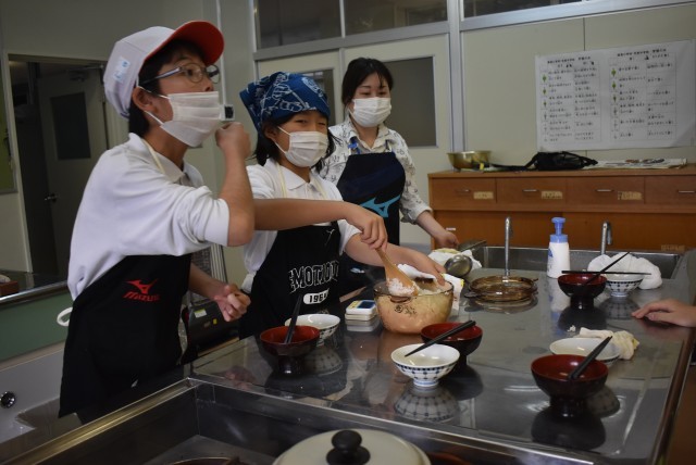 5年生はご飯とみそ汁、6年生はおかずを作りました。