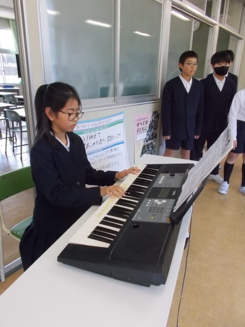 収穫祭に向けて全校児童で歌の練習を行いました。