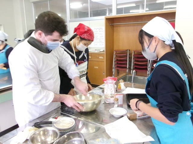 中学校1,2年生が合同で、家庭科のクッキーとバナナケーキ、マフィン、スコーンを作りました。