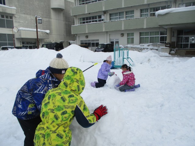毎年降る雪ですが、子どもたちはこのシーズンの雪遊びを心待ちにしているようで、どの学年の子ども達も楽しく遊んでいます