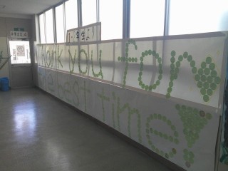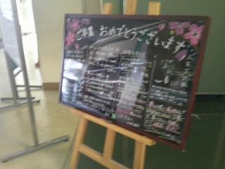 玄関には在校生からのメッセージを、生徒会のみなさんが遅くまで残って作成してくれました。先生方からのお祝いの言葉がブラックボードに書かれています。