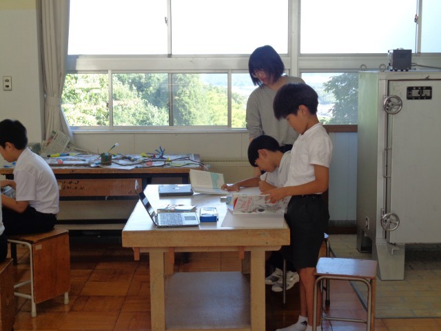 10月2日(木)小学校3・4年 読書感想画を描いています。
