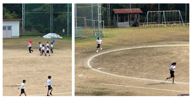小学校は長休みを利用して、「ランランタイム」と称してグラウンドを走っています。