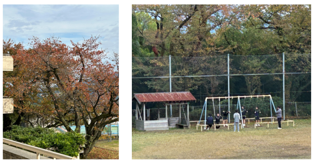 ※中学生は持久走の授業が終わった後、ブランコで先生と一緒に休憩…。ほっこりする風景です。
