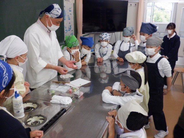28日(金)の5・6限目に、御菓子処「美福」さんをお招きして、和菓子作りを体験しました。