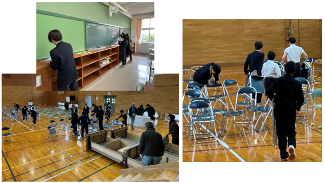 今日は前日のリハーサルを小中全体で行いました。その後、明日の卒業式に向け、在校生の子どもたち(小学校4・5年、中学校1・2年)と先生方で準備を行いました。一生懸命に清掃をしたり、椅子をきれいに並べたり…。少ない人数でしたが、誰一人手を抜くことなく、仕事をしてくれました。ありがとう。