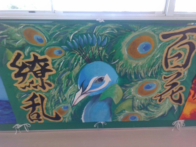 先週9月3日(水)6限目に実施した「運動会結団式」の中で、各団の「団旗係」が夏休み中に作製した団旗を、オンラインで全校生徒に紹介する場面がありました。