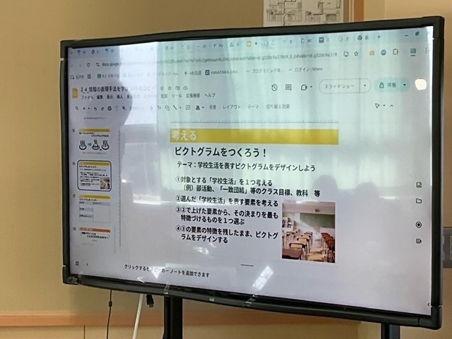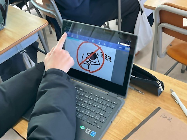 今日は「デザイン」に関する授業で、Chromebookを活用しながら「ピクトグラム」を作成する内容でしたが、いつもの教科学習の枠を飛び越えた、いわゆる「リベラルアーツ」や「STEAM」と称される分野の学習は、生徒たちもワクワクしたようです。